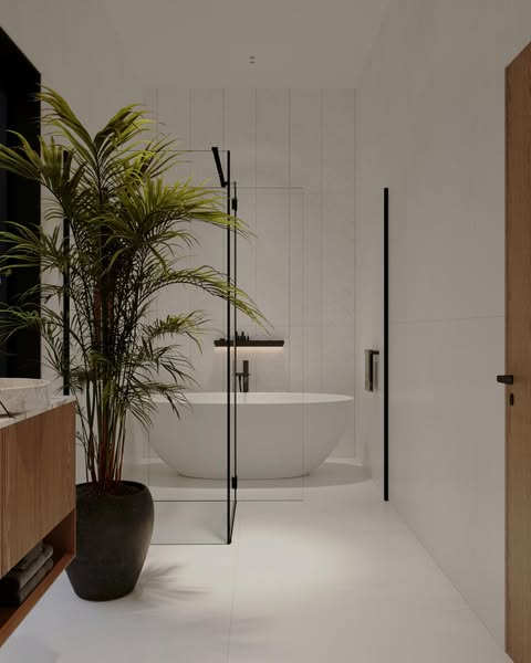 Beyond functionality, this space is an exploration of profound contrasts. The concept reinterprets luxury through the lens of absolute simplicity, where the absence of color is balanced by the richness of textures and the rigor of execution details.