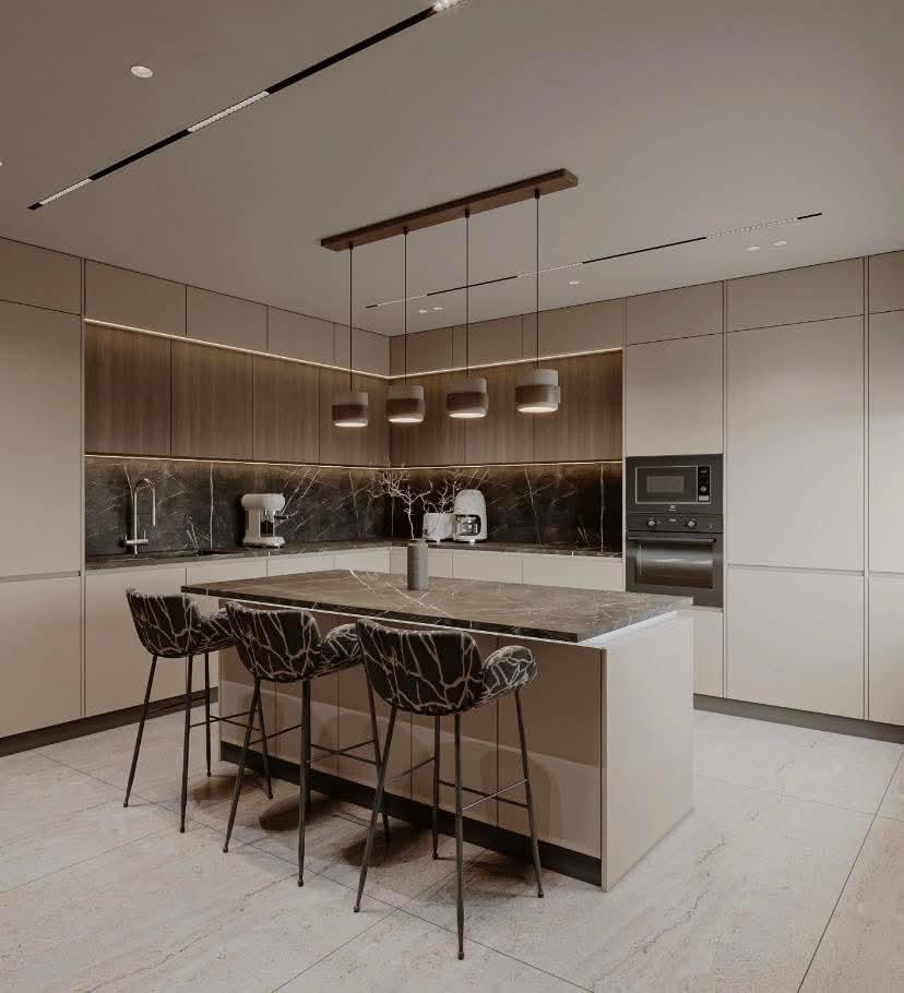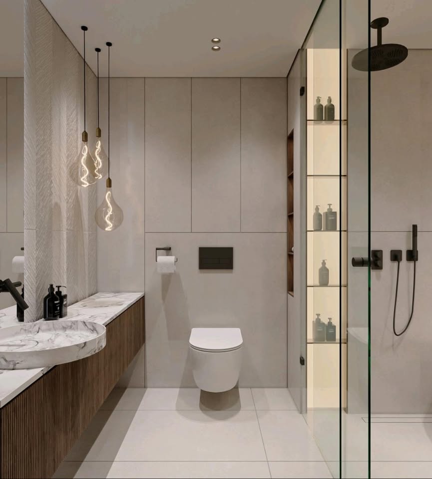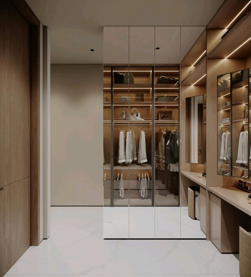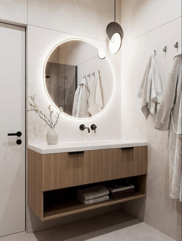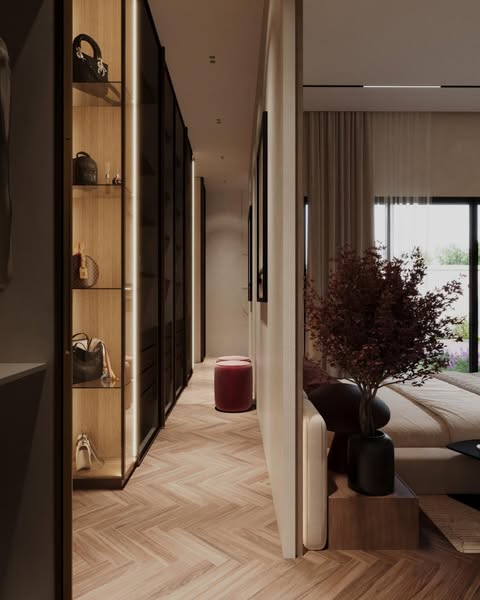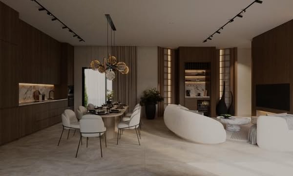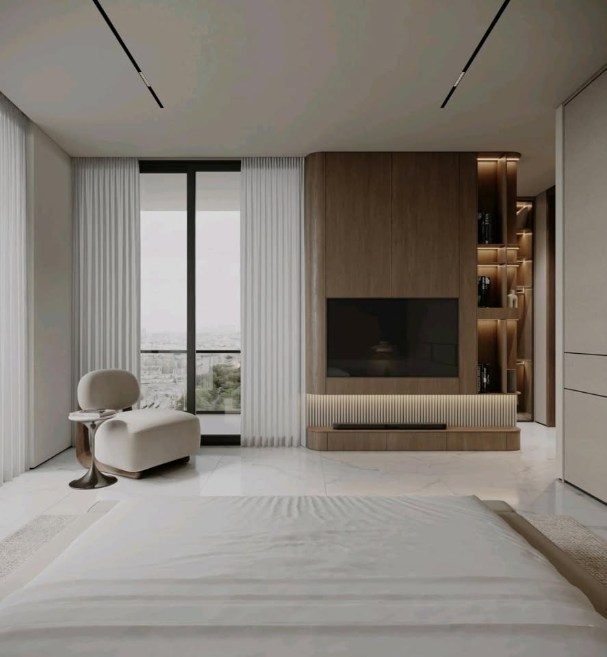 This interior design project redefines contemporary luxury through a warm-minimalist approach, where organic aesthetics meet absolute functionality. The space is conceived as a sanctuary of relaxation, defined by a neutral color palette and premium natural textures.